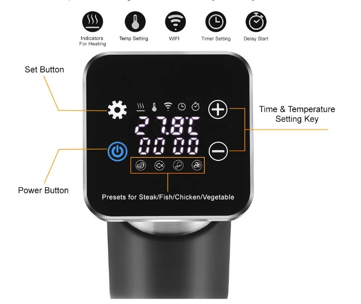 Sokkal többet tud mint egy átlagos sous vide készülék. A legfontosabb, hogy WiFi segítségével kapcsolódni tud a mobiltelefonunkhoz. A mobiltelefon applikációján vagy kiválasztjuk a szuvidálni készült alapanyagot és a készülék automatikusan elvégzi a beállításokat (idő és hőmérséklet), vagy manuálisan beállíthatjuk a kívánt hőmérsékletet és időt. A készülék előmelegít, majd hang jelzéssel jelzi, amikor elérte a kívánt hőmérsékletet. A mobiltelefon valós időben követi a főzést, és folyamatosan adatot szolgáltat a hőmérsékletről és a főzési időről. A készülék értesítést küld a mobiltelefonra, amennyiben valamilyen gond merülne fel a hosszú főzés ideje alatt. A szuvidáló gép a főzési idő végével is értesítést küld a mobiltelefonra.