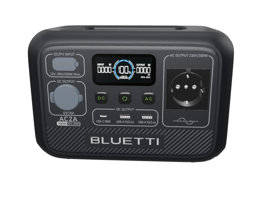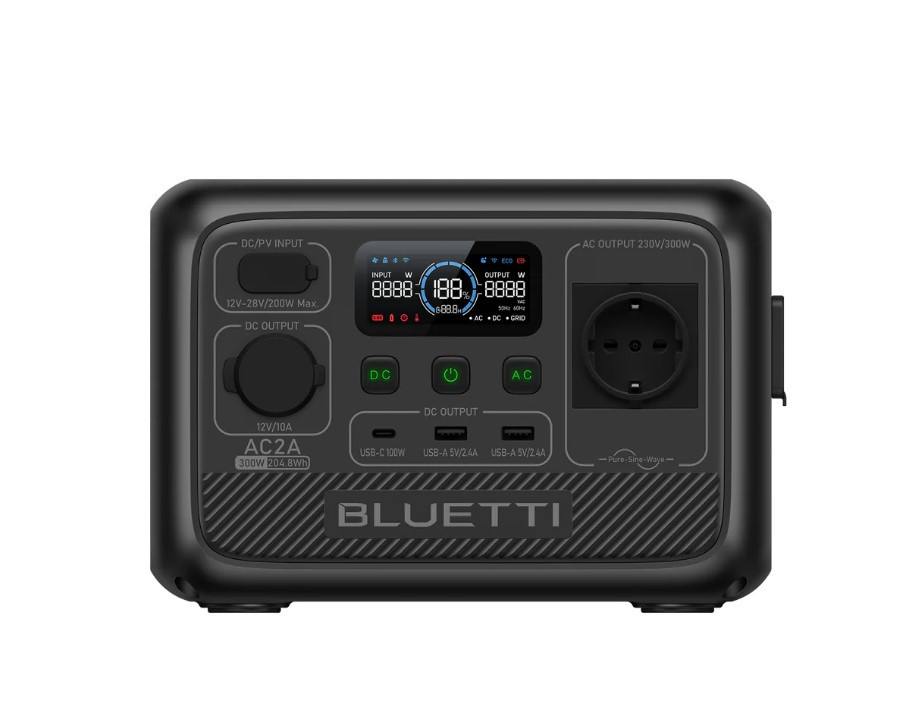Bluetti AC2A töltőállomás, szolár generátor 300W / 600W , 204,8Wh hordozható erőmű