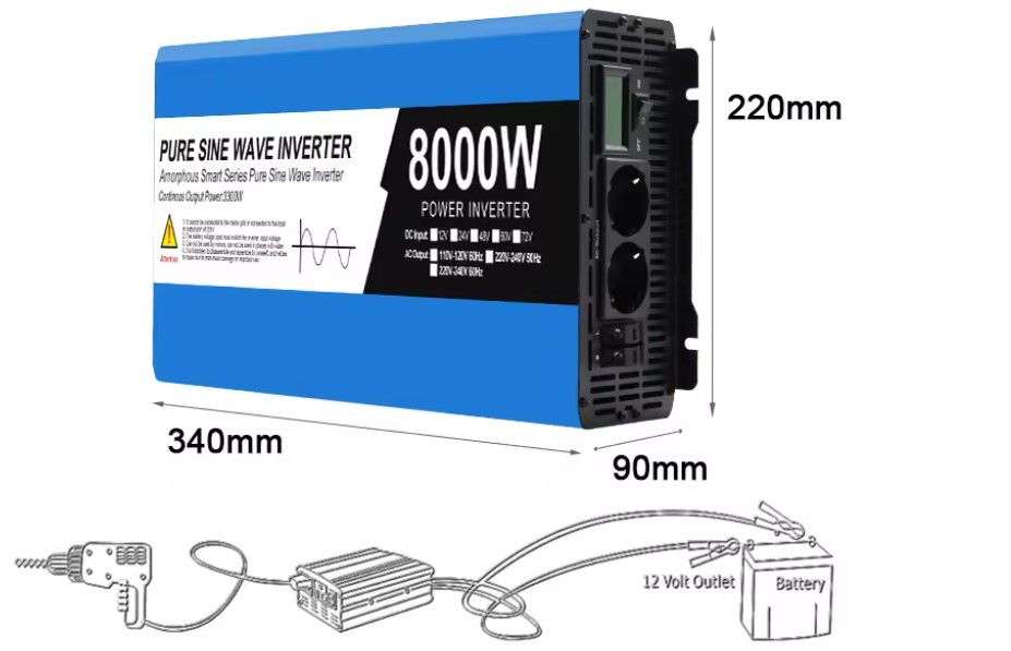 8000W inverter tiszta szinuszos DC 12V-ról AC 220V-ra LED kijelzővel