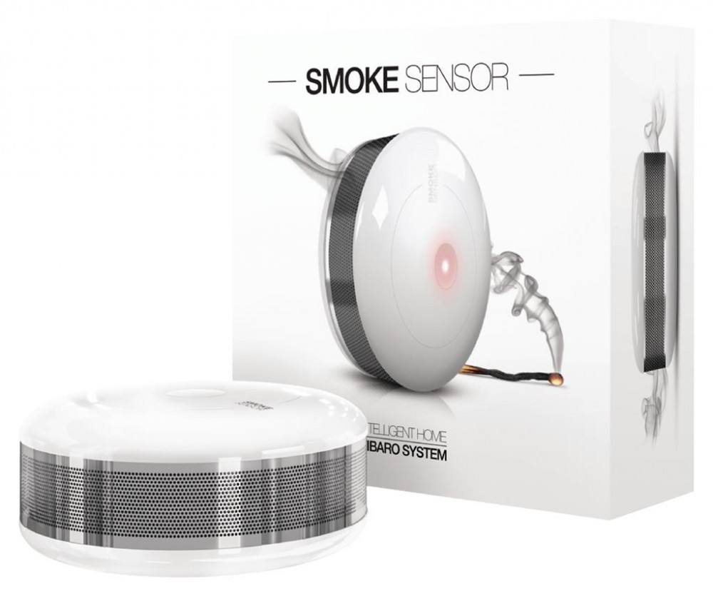 A FIBARO Smoke Sensor egy ultra könnyű, univerzális, elemes, optikai füstérzékelő, mely a Z-Wave Plus szabványok szerint működik. Felszerelhető falra vagy mennyezetre (min. 40 cm-re a saroktól). A füst jelzése a beépített sziréna megszólalásával, a LED villogásával, valamint a Z-Wave hálózati eszközöknek küldött parancsokkal történik.