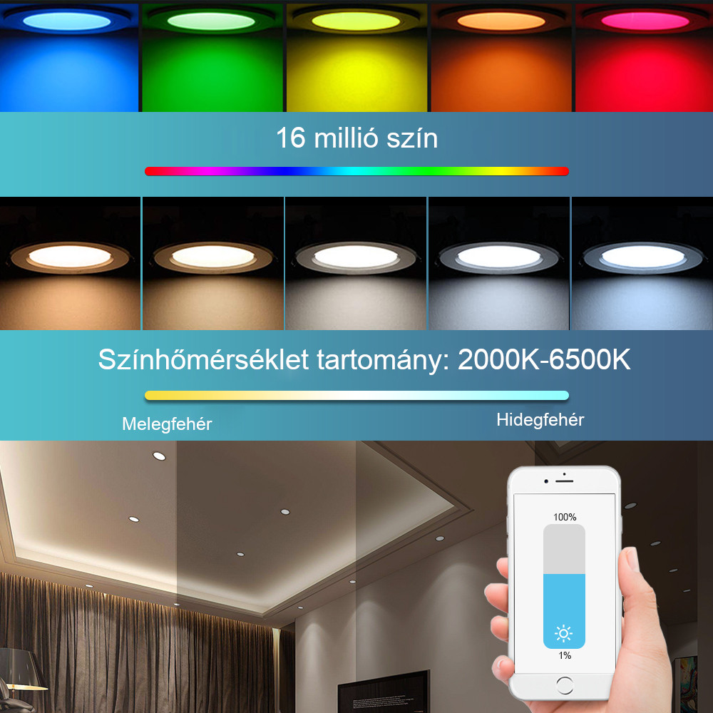 16 MILLIÓ SZÍN VÁLTOZIK: Tompítható telítettségszabályozás, a színhőmérséklet 2000-6500K között szabályozható. A LED izzók megjegyzik az utolsó színbeállítást, miután a tápfeszültséget kikapcsolták.