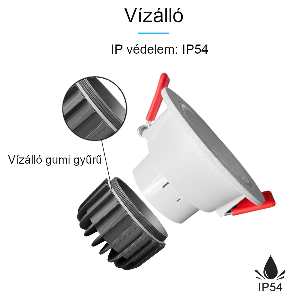 IP54 besorolásának köszönhetően bármilyen helységbe szerelhető.