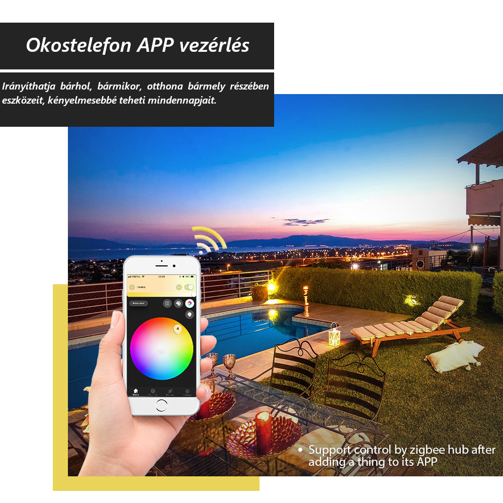 ZigBee kompatibilitás: a LED izzó ZigBee technológiával működik, kompatibilis az Amazon Echo Plus vagy más gyártótól zármazó átjárókkal és Android/iOS rendszerrel.