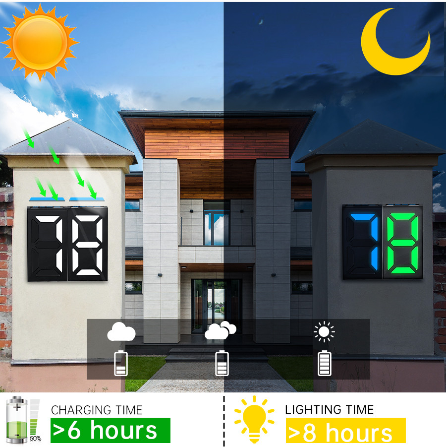 Napelemes LED házszám 1-9-ig beállítható, színes vagy fehér világítás
