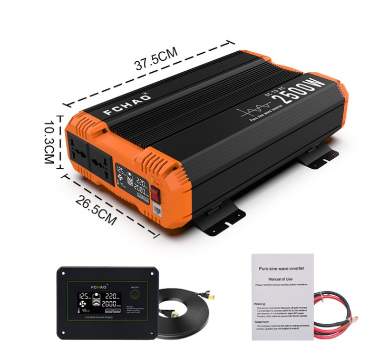 5000W inverter tiszta szinuszos DC 24V-ról AC 220V-ra dupla aljzattal, LED kijelzővel, távvezérlővel FCHAO