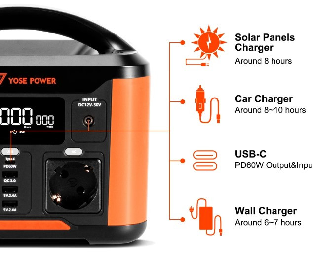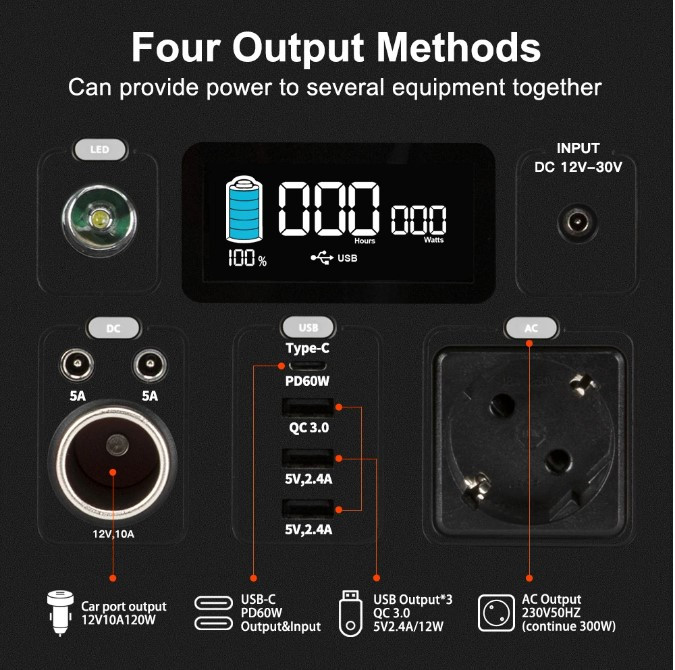 ● Megfelel a különféle berendezések tápellátási igényeinek: Négy különböző interfésszel van felszerelve: AC, DC, USB, autós töltő és USB-C. Két különböző feszültségű AC és DC kimenetet biztosít. Ezenkívül olyan csúcsvezérlési sémákkal is fel van szerelve, mint például a QC gyorstöltés, az MPPT.