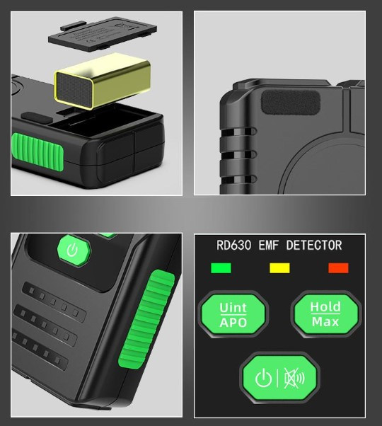 Az RD630 egy precíz, hordozható 3-az-1-ben mérőeszköz, amely képes az elektromos, mágneses és rádiófrekvenciás sugárzás pontos kimutatására. Színes LCD kijelzője azonnali vizuális visszajelzést nyújt a sugárzási szintekről, a beépített hangjelzés pedig figyelmeztet a határértékek túllépésekor. Ideális otthoni, irodai és ipari környezetek sugárzásellenőrzéséhez. Egyszerűen kezelhető, kompakt és megbízható eszköz mindennapi használatra.