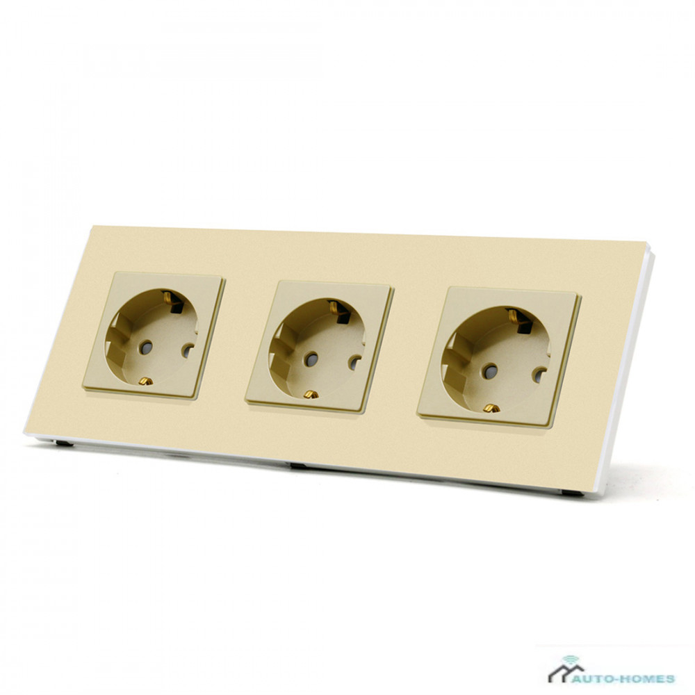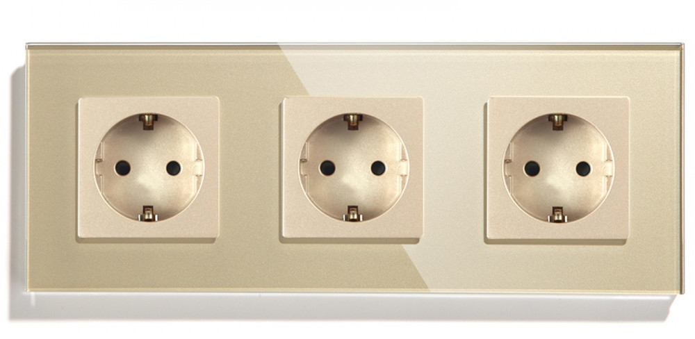 Hármas fali dugalj üveg konnektor, arany, magyar szabvány, Elegant Pro