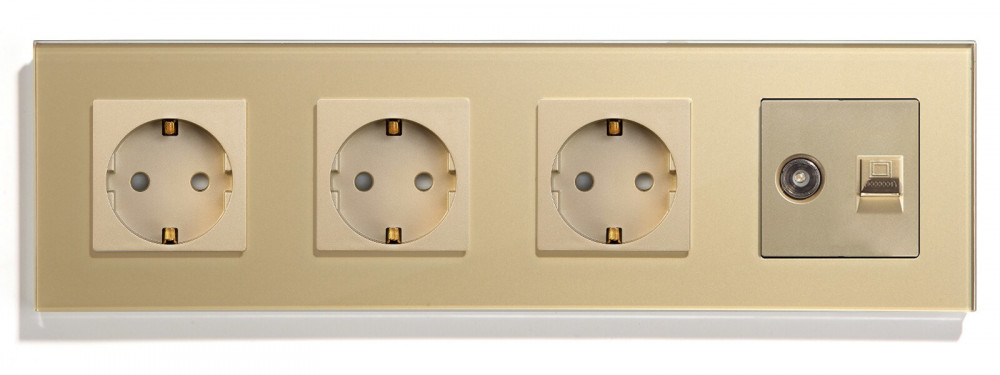 Négyes fali dugalj üveg konnektor és TV+Internet RJ45 fali csatlakozó, arany, magyar szabvány, Elegant Pro