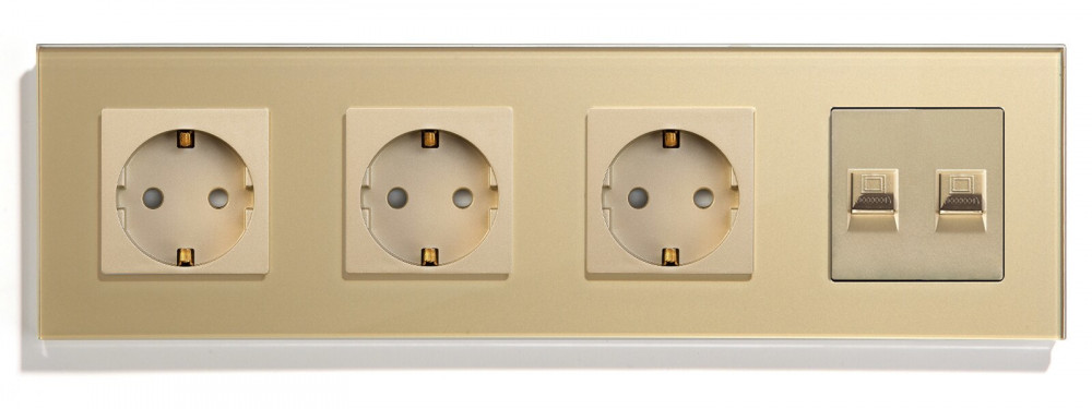 Négyes fali dugalj üveg konnektor és dupla internet RJ45 csatlakozó arany, magyar szabvány, Elegant M