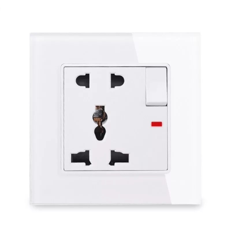 Univerzális fali dugalj ON/OFF kapcsolóval üveg kerettel ELEGANT - fehér