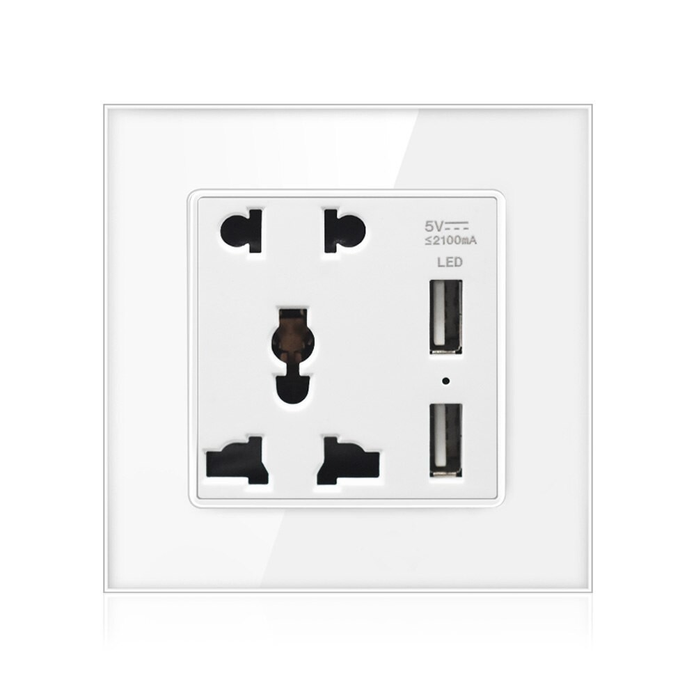USB fali aljzat univerzális konnektorral 2 db USB üveg kerettel ELEGANT - fehér