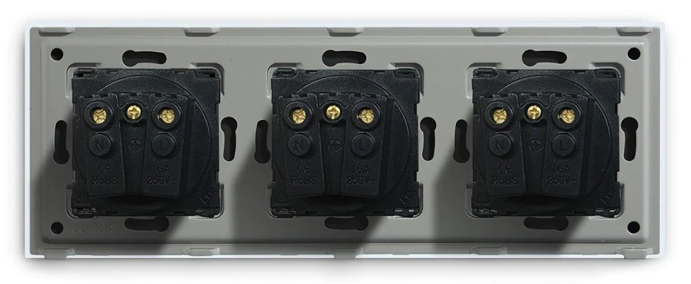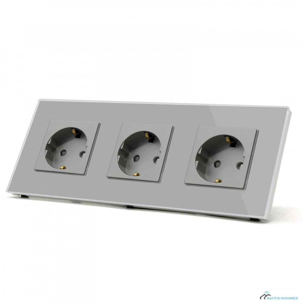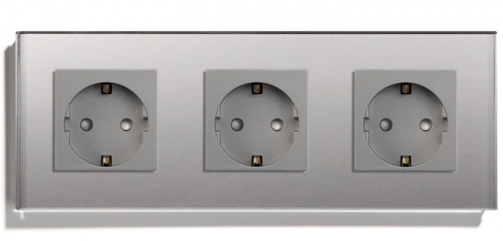 Hármas fali dugalj üveg konnektor, szürke, magyar szabvány, Elegant Pro