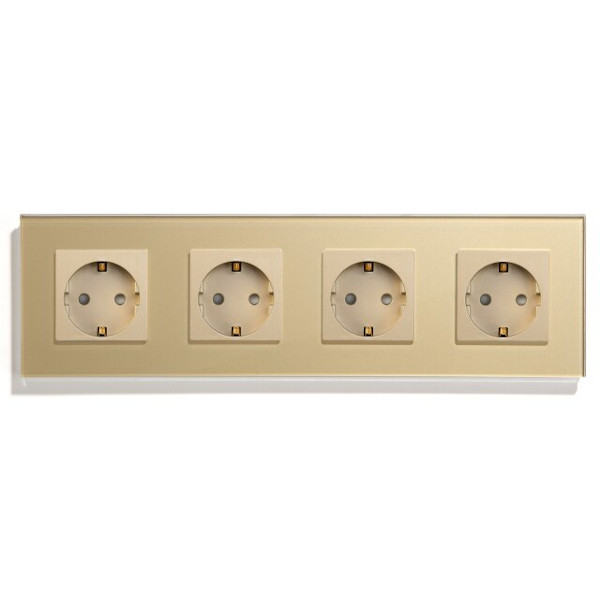 Négyes fali dugalj üveg konnektor, arany, magyar szabvány, Elegant Pro