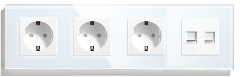 Négyes fali dugalj üveg konnektor és dupla internet RJ45 csatlakozó fehér, magyar szabvány, Elegant Pro