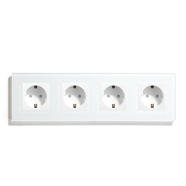 Négyes fali dugalj üveg konnektor, fehér, magyar szabvány, Elegant Pro