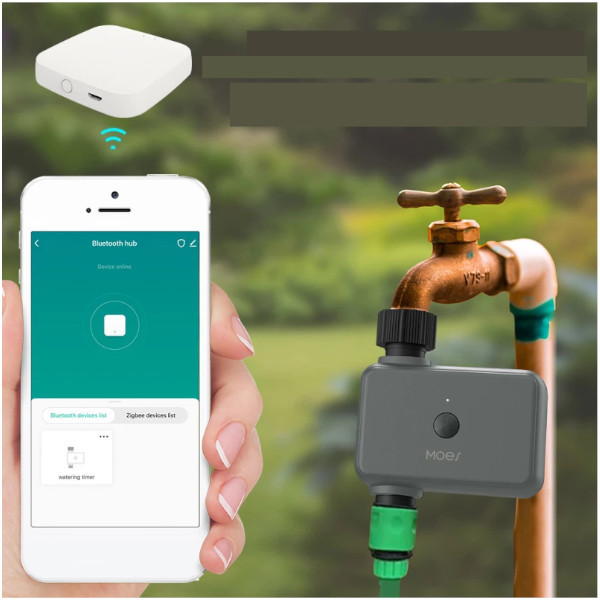 Távvezérelhető, időzített kerti öntözést tesz lehetővé. Telepítése és működtetése rendkívül egyszerű. Bluetooth 5.0 kapcsolat a Smart Life alkalmazással, Tuya Hub Multiprotokoll vezérlővel.