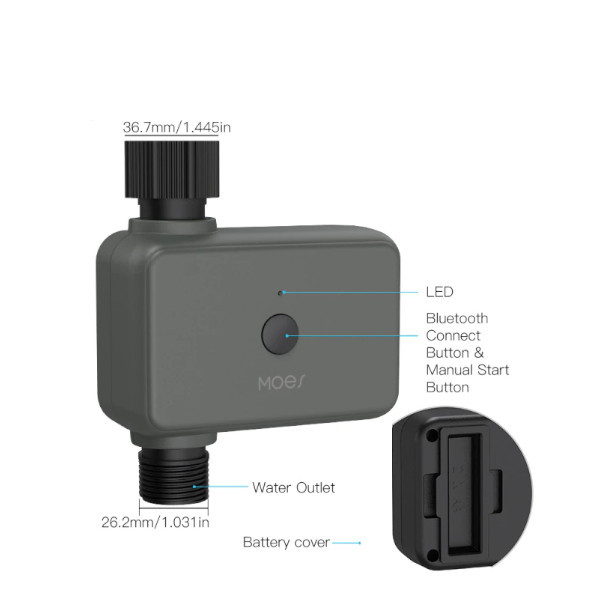 - Egyszerű beállítás és használat, nincs szükség szerszámokra, egyszerűen illessze az időzítőt a csapra, és csatlakoztassa a tömlőt a dugaszolható csatlakozóhoz,