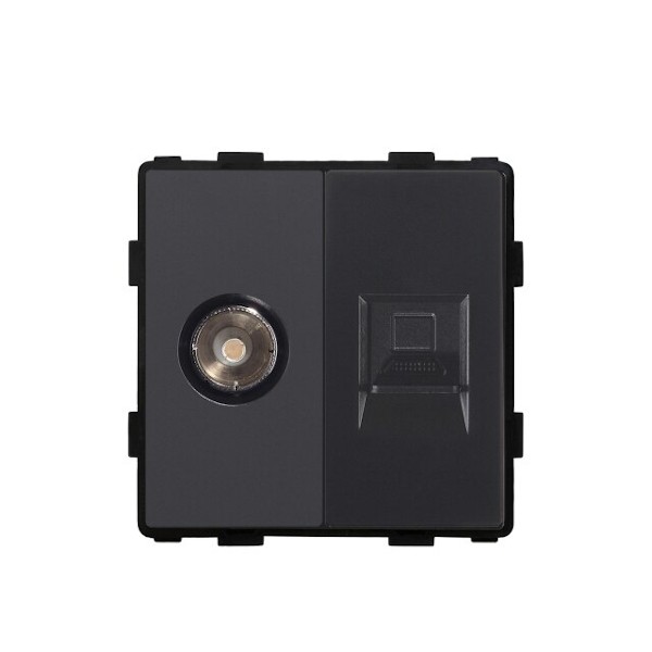 TV és Internet RJ45 fali konnektor keret nélkül, fekete, magyar szabvány, Elegant Pro