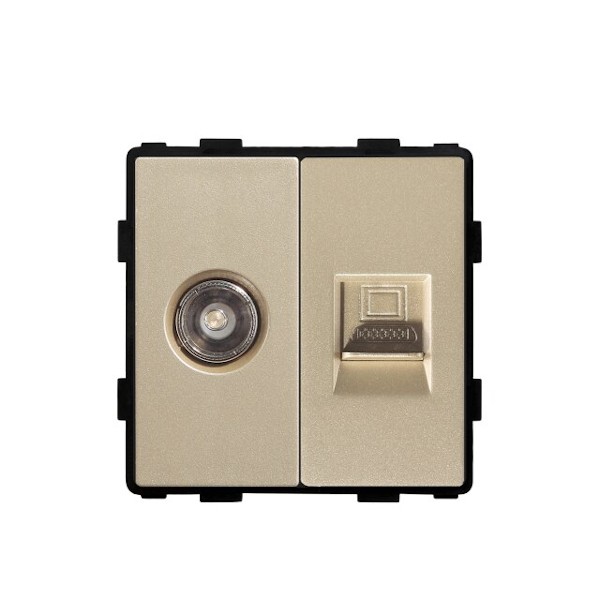 TV és Internet RJ45 fali dugalj konnektor keret nélkül, arany, magyar szabvány, Elegant Pro