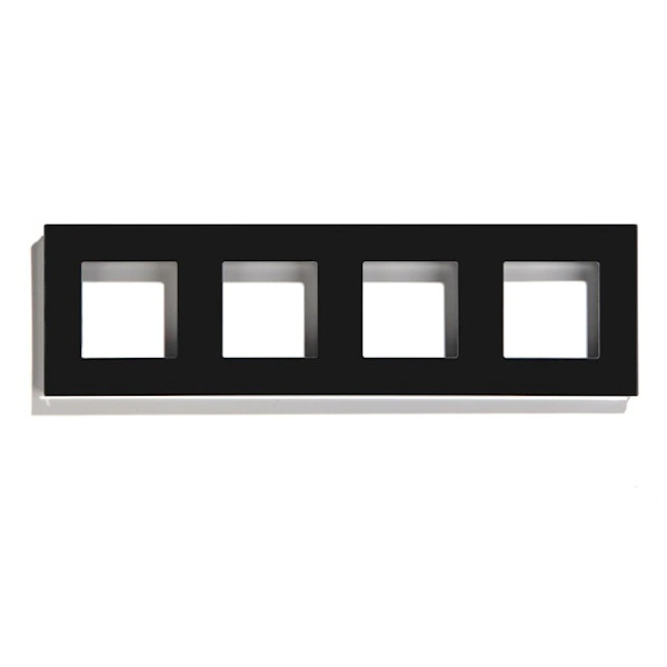 Négyes sorolókeret, fekete, Elegant üveg keret fali konnektorhoz, CAT6 , COAX vagy egyéb csatlakozó aljzathoz