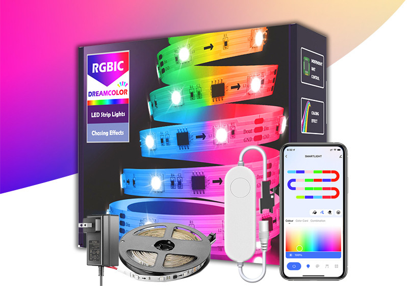 RGBIC LED-vezérlés: az egyes LED chip-ek külön-külön vezérelhetőek, ezért a LED szalagon belül minden egyes LED chipen tetszőlegesen beállítható a szín a fényerő vagy a fénymelegség.