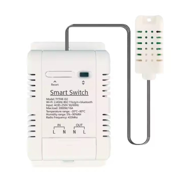 Hőmérséklet- vagy páratartalom mérőként és szabályozóként használható Tuya applikáció alatt. Erősáramú bekötés, ezért stabil mérés, nincsen akkumulátor vagy elem lemerülés. Két körös kapcsolót is tartalmaz, így közvetlenül kapcsolhat hőmérsékletet és páratartalmat kezelő eszközt.