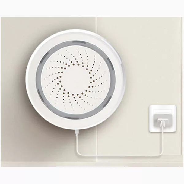 Tuya okos sziréna hang és fény riasztássa. WiFi kommunikációval csatlakozik a TUYA rendszerhez. Működtethető USB vezetékkel. vagy 2 db CR123A elemmel vagy akkumulátorral.
