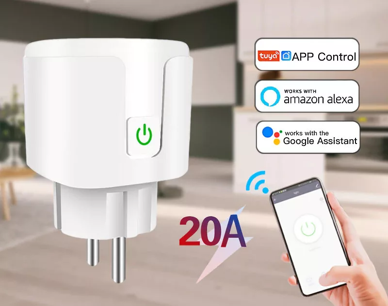 TUYA konnektor Fogyasztás mlrő és energia monitoring szolgáltatással, 20A Wi-Fi, programozható okos konnektor