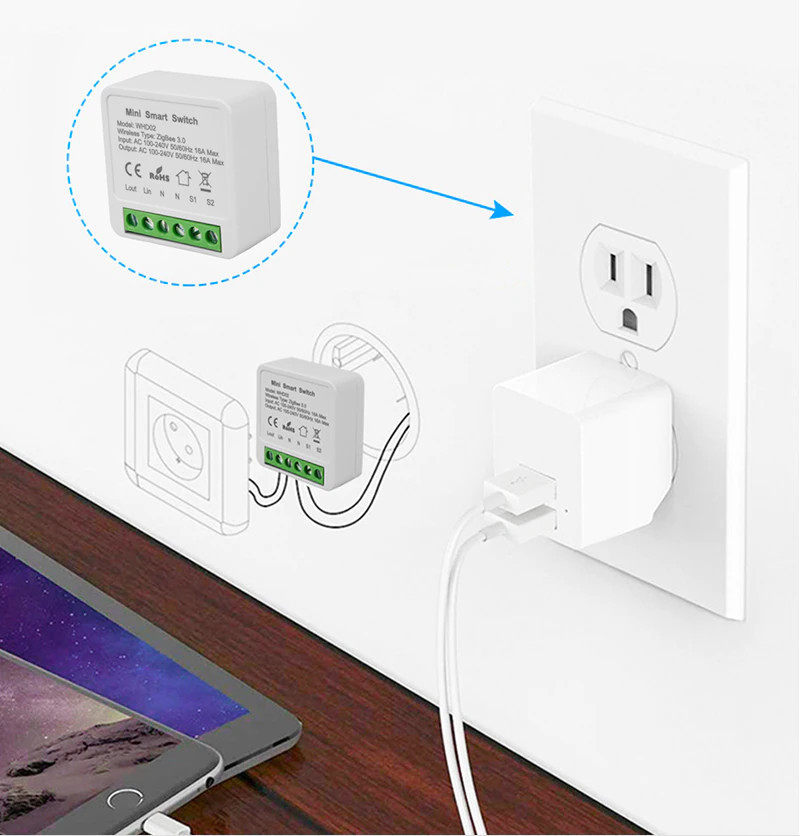 TUYA 1 csatornás relé, N csatlakozási lehetőséggel, Zigbee