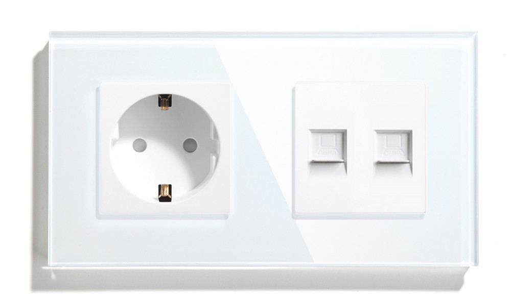 Fali dugalj üveg konnektor és dupla számítógép RJ45 csatlakozó, fehér, magyar szabvány Elegant Pro