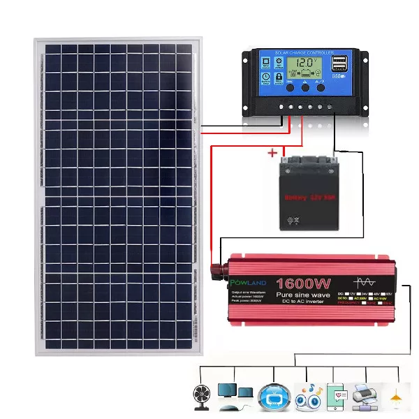 12V Solar Panel System 18V 40W Solar Panel Battery Charge Controller 1600W Solar Inverter Kit Complete Power Generation