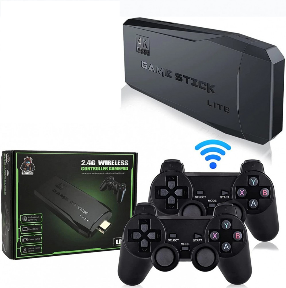 4K HD Video Game Console 2.4G Double Wireless Controller For PS1/FC/GBA Retro TV Dendy Game Console 10000 Games Stick
