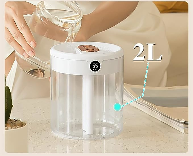 H2o Air Humidifier 2L Large Capacity Double Nozzle with LCD Humidity Display Essential Oil Diffuser for Home Portable USB