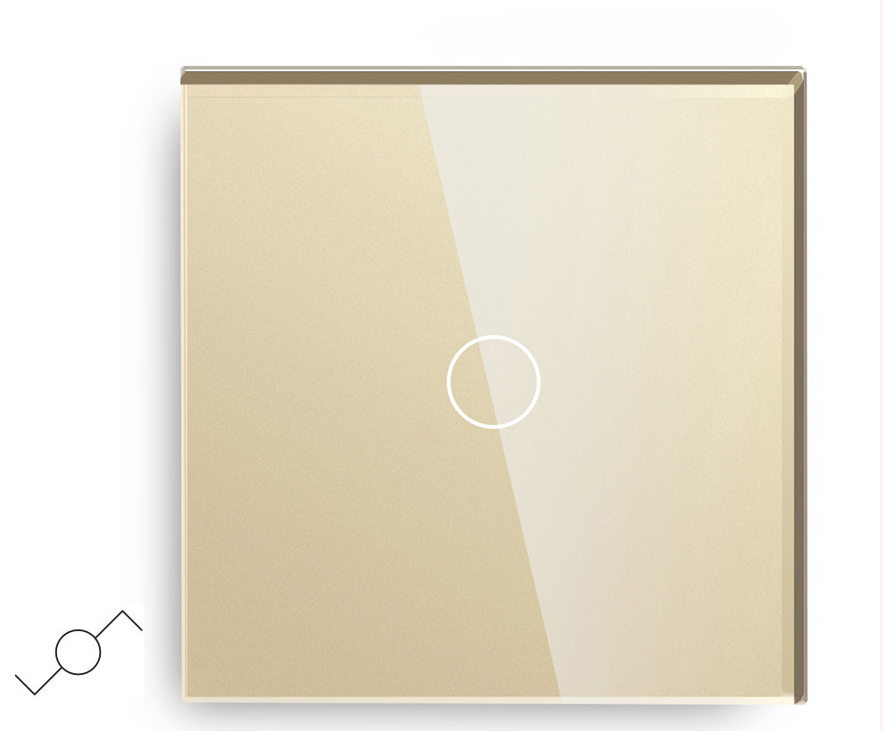 Elegant Touch Light Switch 1 Gang 2 Way, Tempered Glass Panel Light Switch Gold with LED Indicator 86mm White Touch Sensitive Light Switch-No Neutral Wire