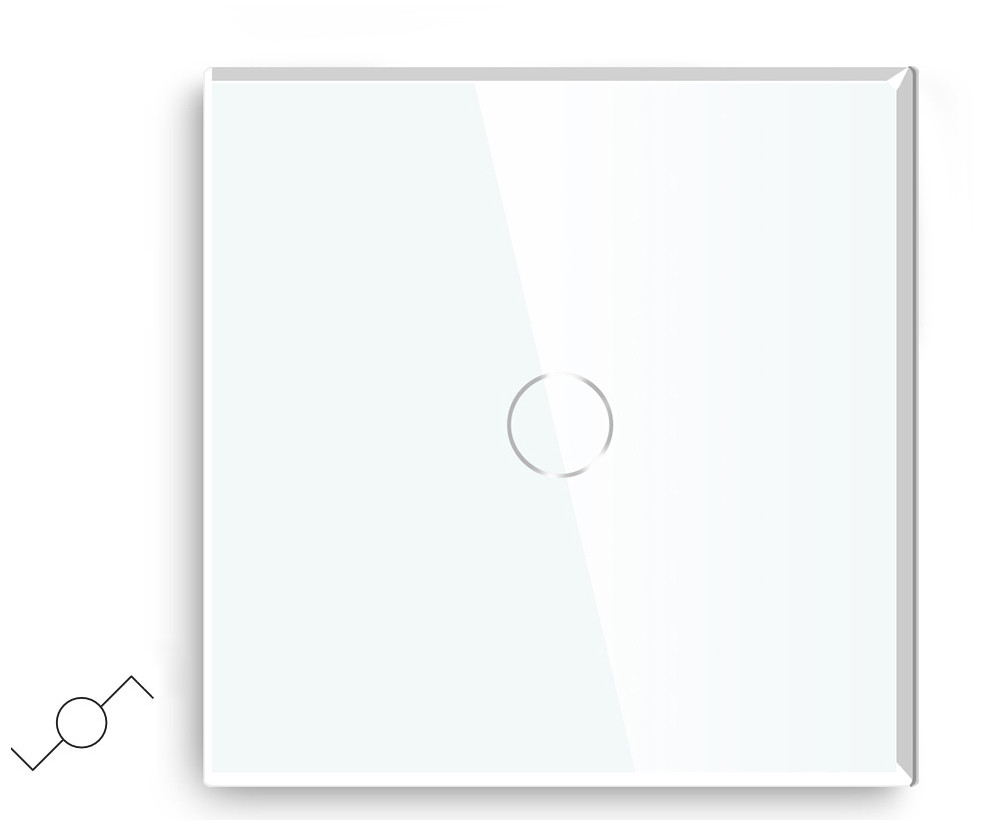Touch Light Switch 1 Gang 2 Way, Tempered Glass Panel Light Switches with LED Indicator 86mm White Touch Sensitive Light Switch-No Neutral Wire