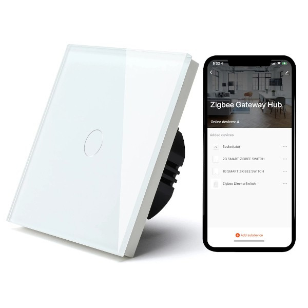 Zigbee Touch Switches 1Gang 1Way Wireless Control Smart Light Switch Tuya Smart Home, HUBITAT, SmartThings, Google Alexa - white