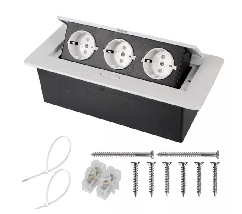 Excellent value for money recessed 2-way socket. Silver-colored aluminum panel with EU standard pop-up socket, socket.