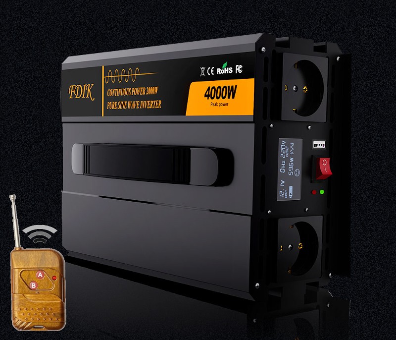 FDIK Premium 4000W / 2000W 12V Pure Sine inverter, RF remote control