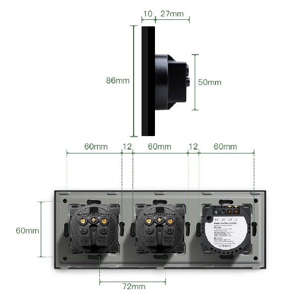 Material: Glass Panel & Iron Plate & Plastic Switch Module