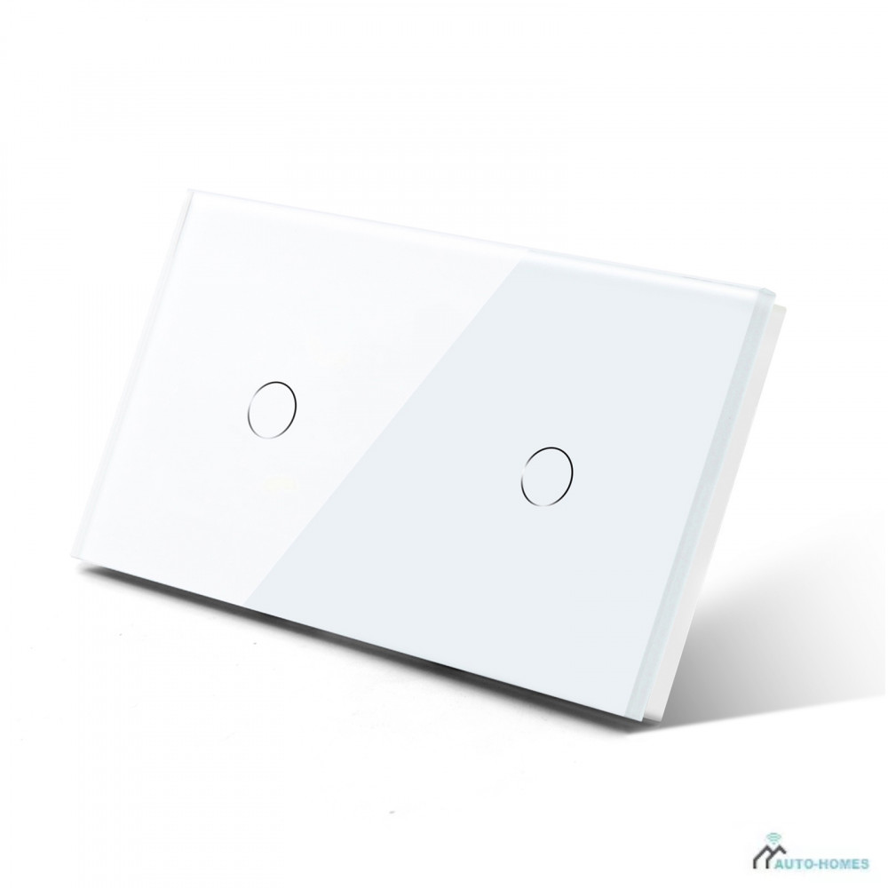 Dual Touch Light Switch 1 Gang 1 Way, Tempered Glass Panel Light Switches with LED Indicator 86mm White Touch Sensitive Light Switch-No Neutral Wire