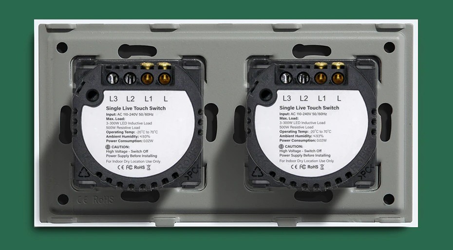 Input: AC 110 - 240 V 50/60HzMax.Load: 3-300W LED inductive Load500W Resistive LoadOperating Temp.: -20°C to 70°CAmbient Humidity: <93%Power Consumption: 0.02WSize: 157*86*35mm