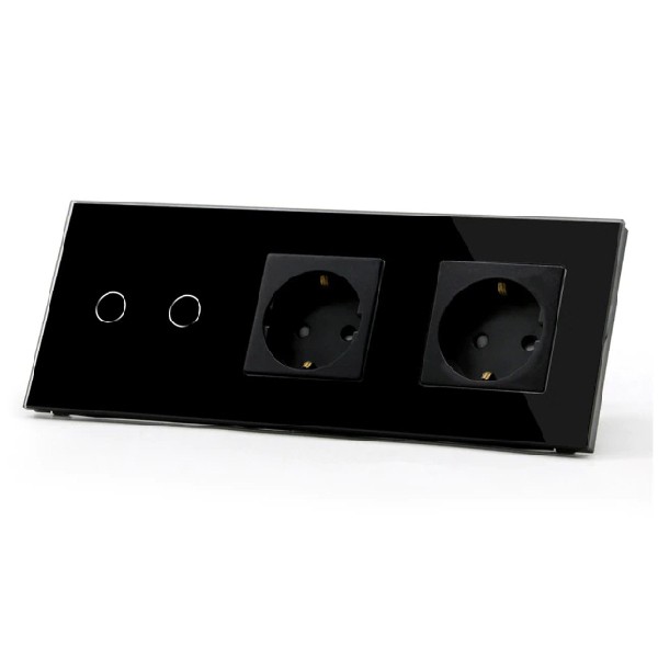 Elegant Touch Light Switch 2 Gang 1 Way and Dual Socket, Tempered Crystall Glass - BlackElegant Touch Light Switch 2 Gang 1 Way and Dual Socket, Tempered Crystall Glass White Touch Sensitive Light Switch-No Neutral Wire.- Black