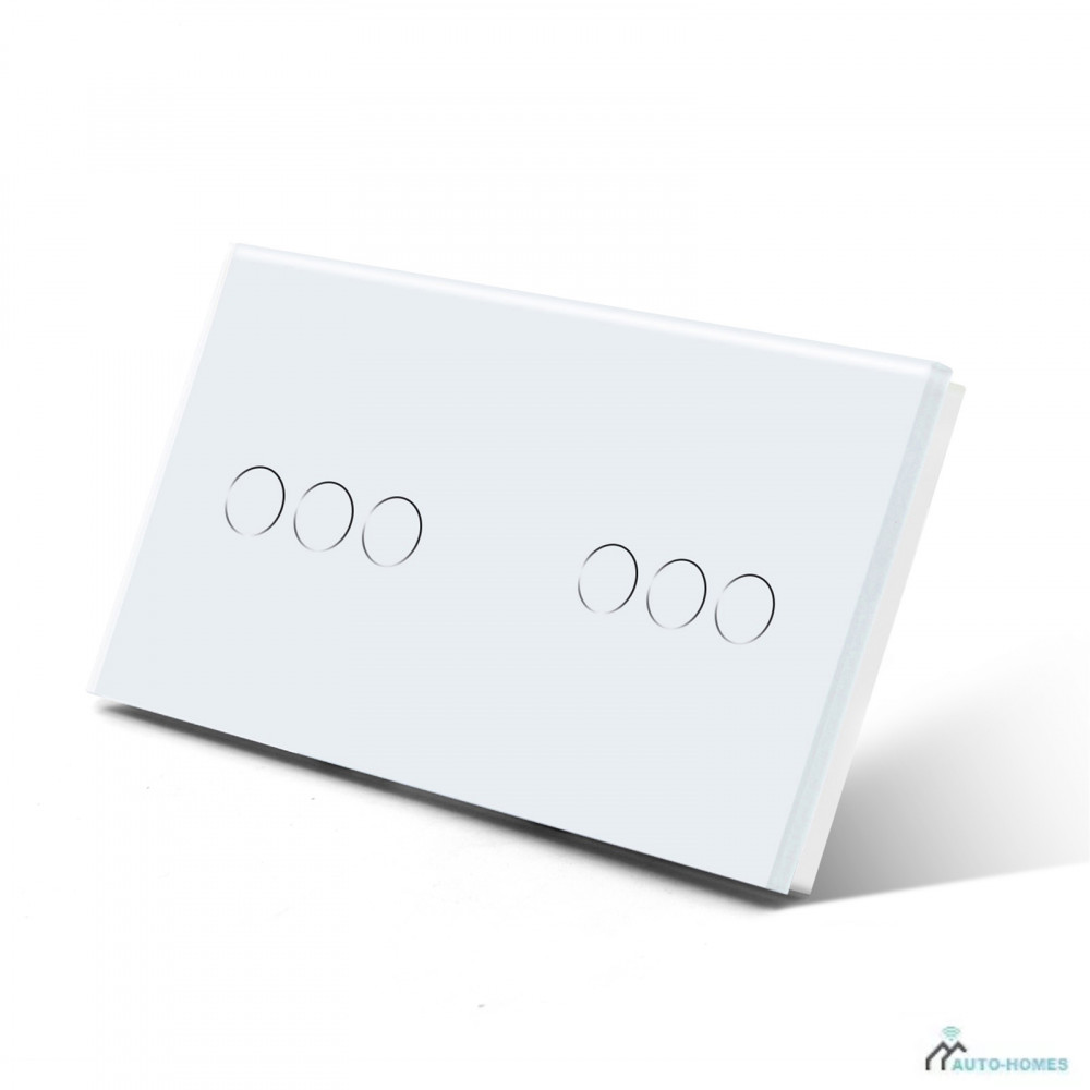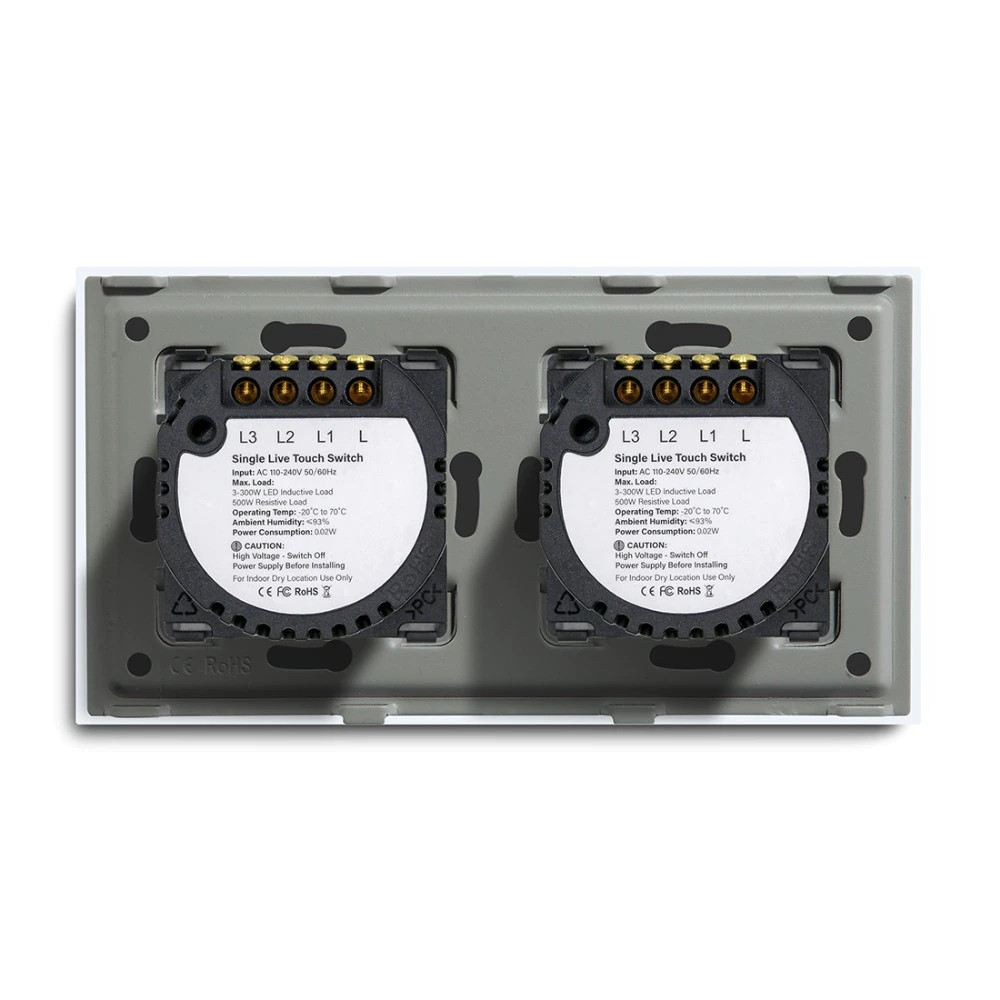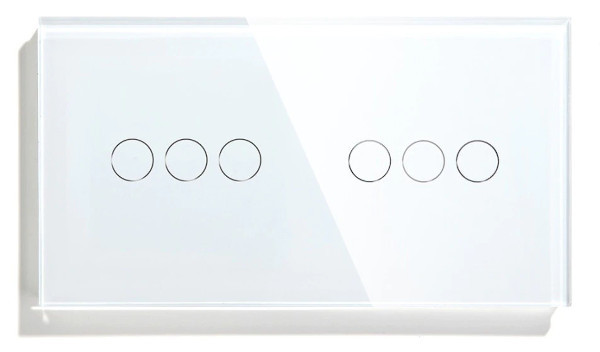 Dual Touch Light Switch 3 Gang 1 Way, Tempered Glass Panel Light Switches with LED Indicator 86mm White Touch Sensitive Light Switch-No Neutral Wire