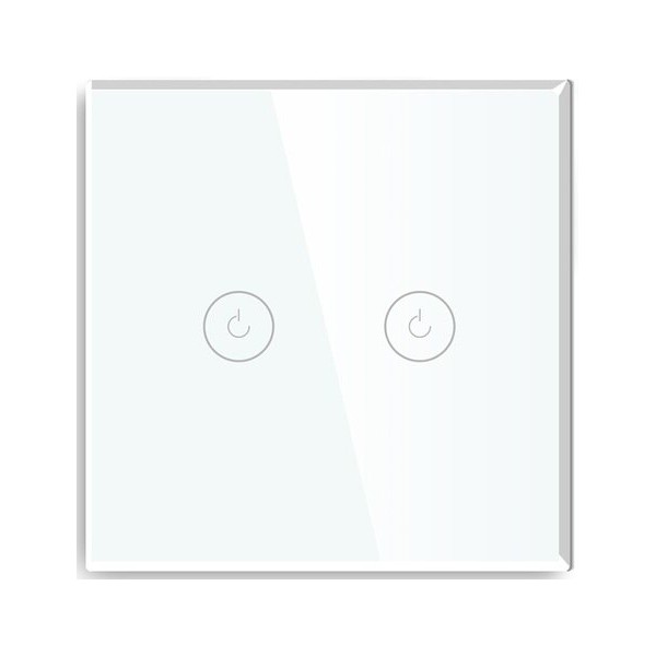 Tuya compatible WiFi touch Light Switch 2 Gang 1 Way, Tempered Glass Panel Light Switches with LED Indicator 86mm White Touch Sensitive Light Switch-No Neutral Wire