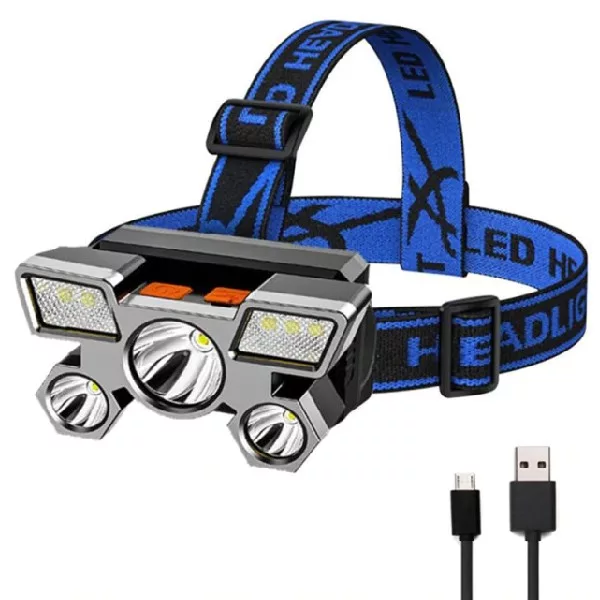 5LED With Built-in 18650 Battery USB Rechargeable Portable Flashlight Lantern Headlamp Outdoor Camping Headlight