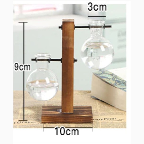 Terrarium Hydroponic Plant Vases Vintage Flower Pot Transparent Vase Wooden Frame Glass Tabletop Plants Home Bonsai Decor