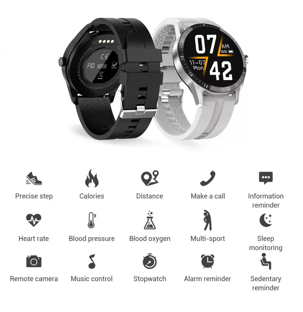 Exclusive-looking smart watch with a 1.3-inch HD display, which can be a reliable companion in everyday life and sports. Whether your device is Android or iOS, it can be easily synchronized with the clock, thus indicating phone calls and the arrival of messages, as well as notifications of various applications (facebook, instagram, twitter, etc.). You can make and receive calls using Bluetooth. Listen to your favorite music from your playlist.