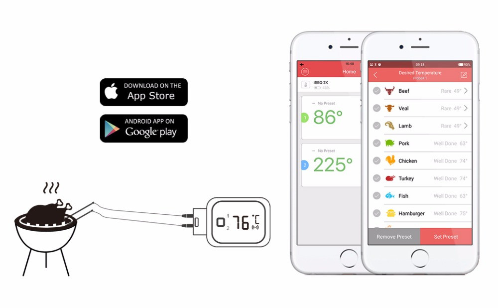 Download the app to your smartphone, set the maximum temperature and time, and in addition to monitoring the temperature remotely, you will receive an alarm when the set values are reached. It is designed to make cooking simple and convenient.