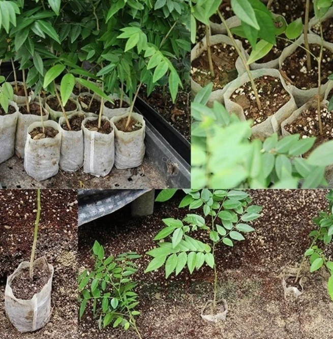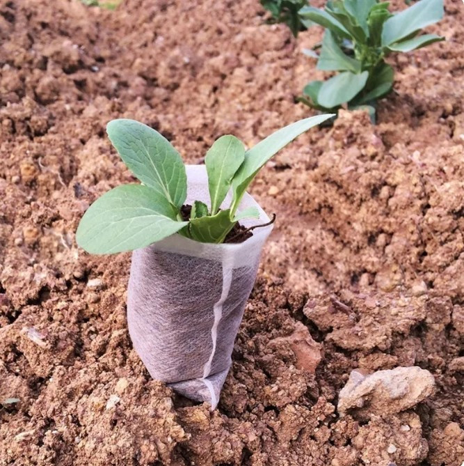Eco-friendly breathable and biodegradable non-woven material, no need to remove the bag when transplanting, improving the plants survival rate.